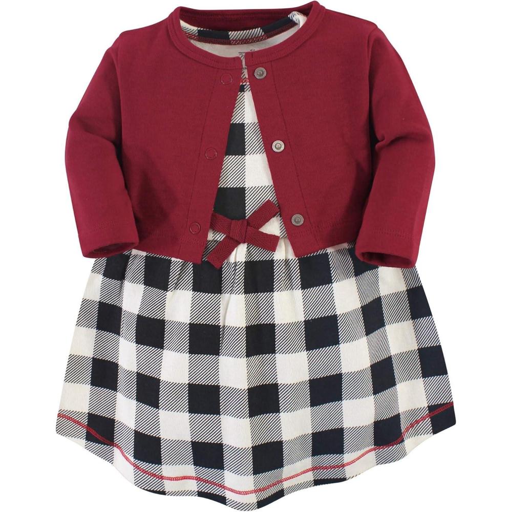 Touched by Nature Infant Toddler Girls Organic Cotton Dress and Cardigan, Rainbows Sunshine(Black Plaid)