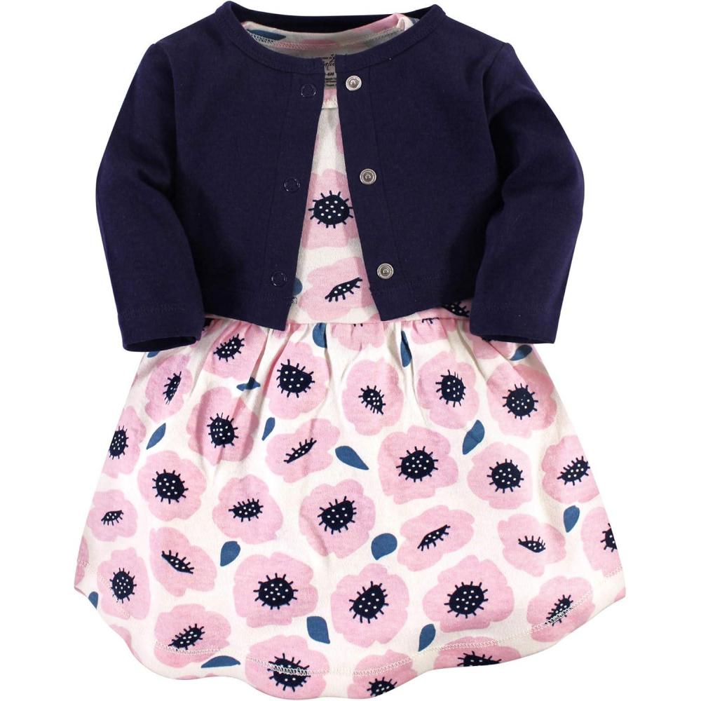 Touched by Nature Infant Toddler Girls Organic Cotton Dress and Cardigan, Rainbows Sunshine(Blush Blossom)