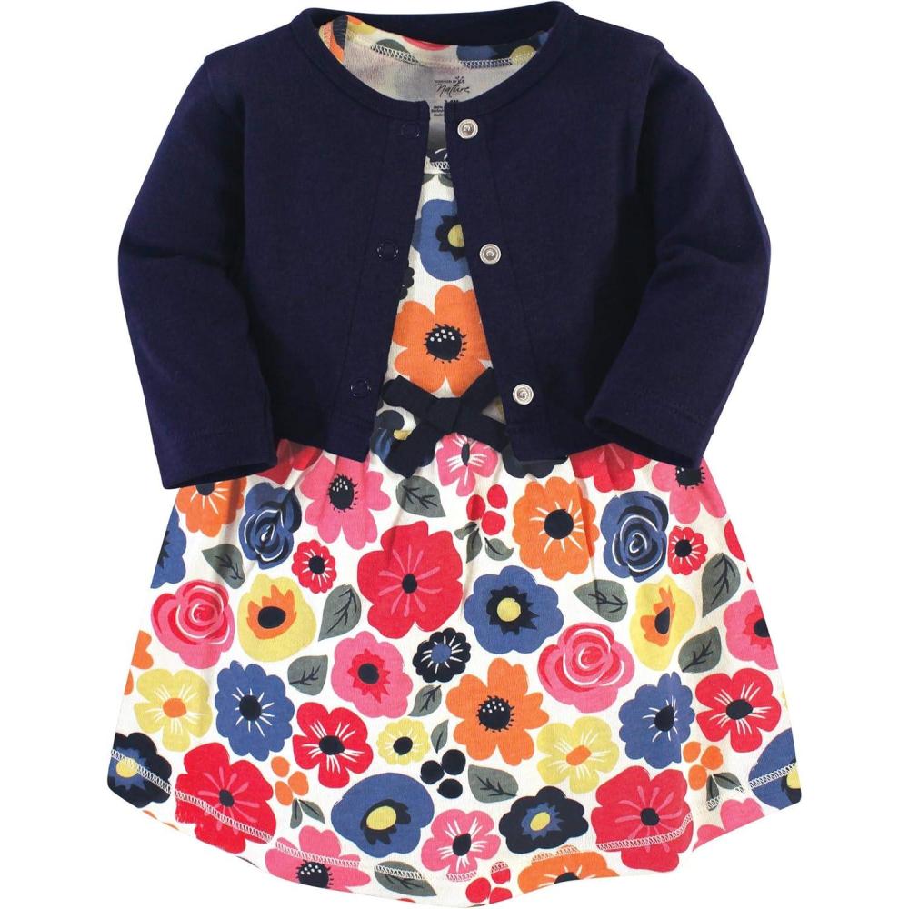 imageTouched by Nature Infant Toddler Girls Organic Cotton Dress and Cardigan Rainbows SunshineBright Flower