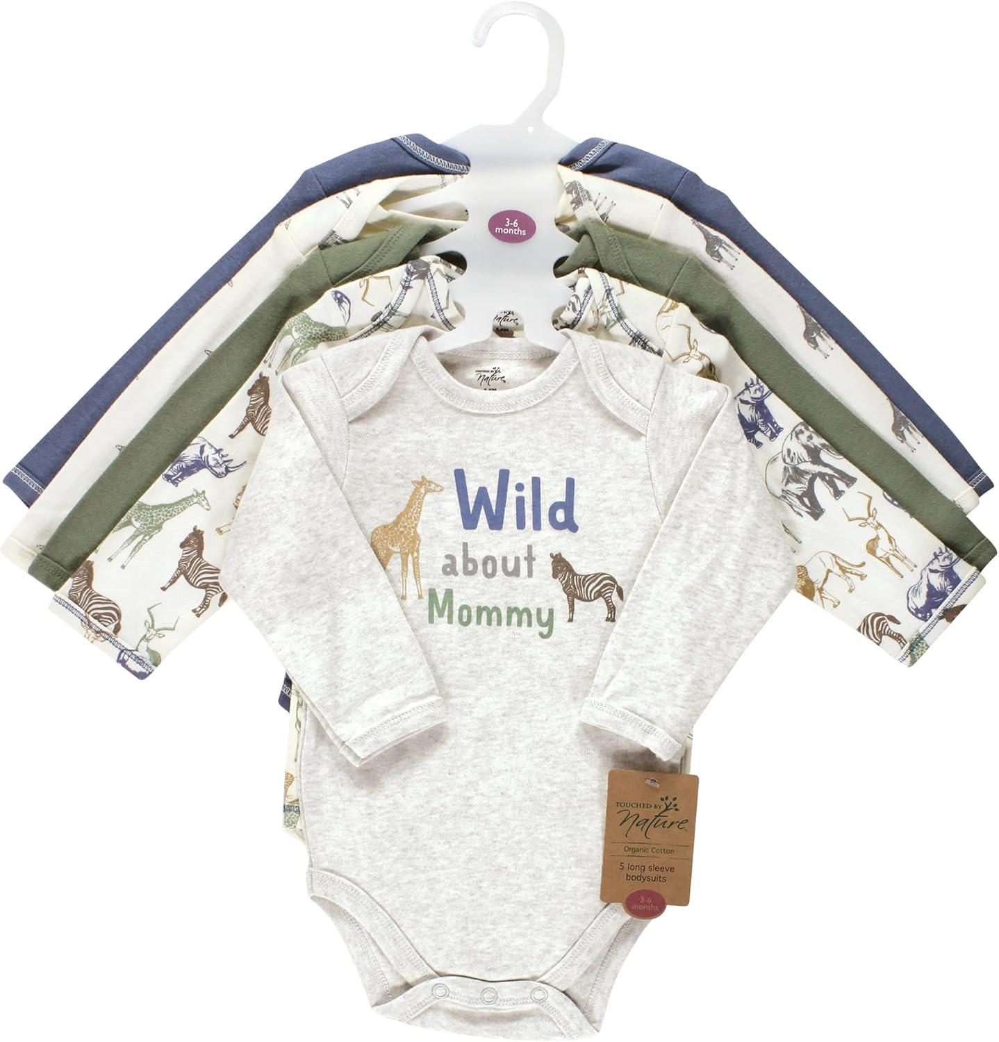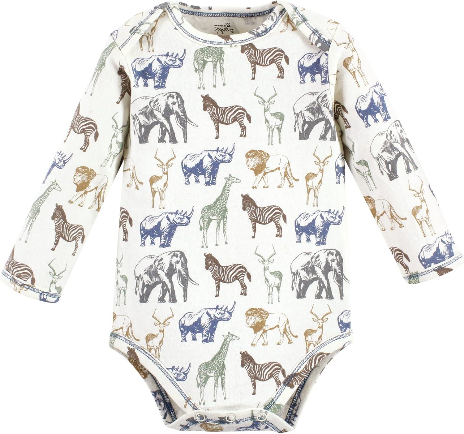 Touched by Nature Unisex Baby Organic Cotton Long-Sleeve Bodysuits(Boy Safari)